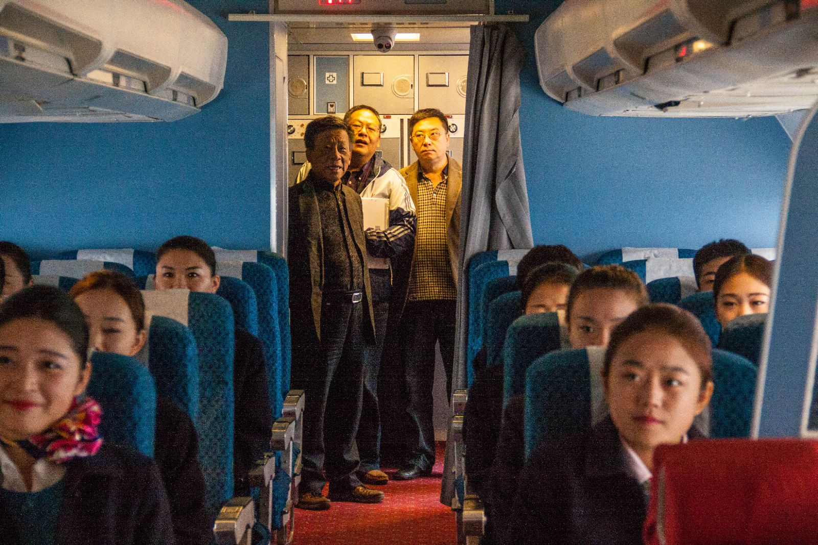 会前,张利宁书记陪同严冰副校长参观航空服务专业学生实训基地