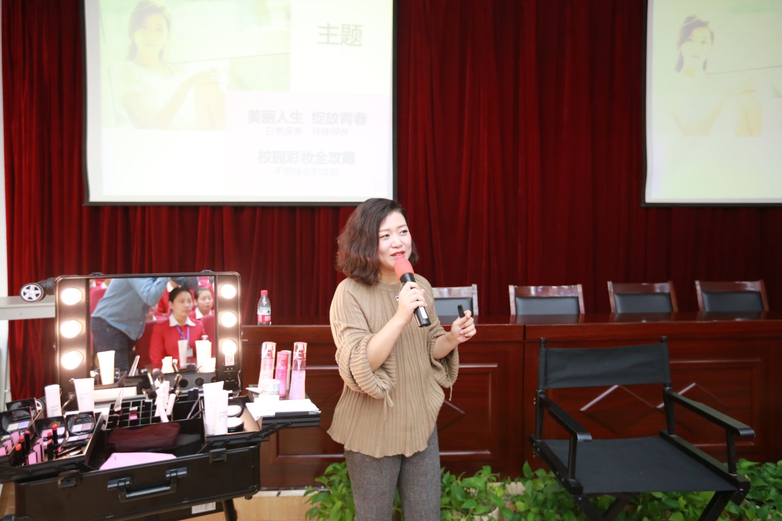 11月19日,多宝(中国)纪检委(工会)与职业技术学院联合举办了“打造女大学生完美妆容”主题讲座。本次讲座由全国妇联“心系大学生”项目办公室资深讲师王琳琳主讲。职业技术学院所有全日制女生参加讲座。