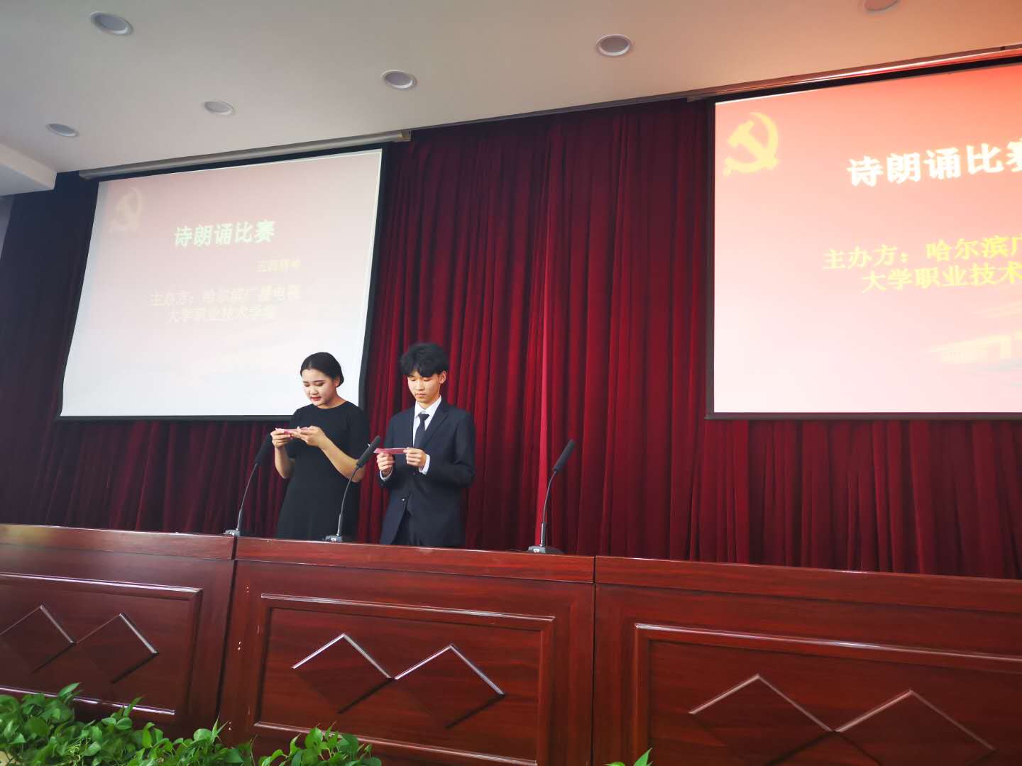 为弘扬中华民族优秀传统文化,提高中职学生的人文素质和道德情操,推动校园文化建设, 5月16日星期四下午职业技术学院举办了纪念五四青年运动100周年系列活动之诗歌朗诵比赛。
