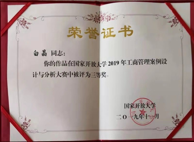 在刚刚结束的国开第七届经济管理类教师优秀论文暨首届数量经济优秀论文评选活动和第四届工商管理案例设计与分析大赛中,我校人文教学部经济管理教研室郭秀芳、杨旭东老师分别获得二等奖和优秀奖。杨旭东老师同时获得优秀指导教师荣誉称号。开放学院工商管理专业白晶、丁明宇同学的作品《从200g咖啡主题西餐厅到200g融合西餐厅》、《专注高端的“森鹰”窗业》分别获得国开2019年工商管理案例设计与分析大赛三等奖和优秀奖。