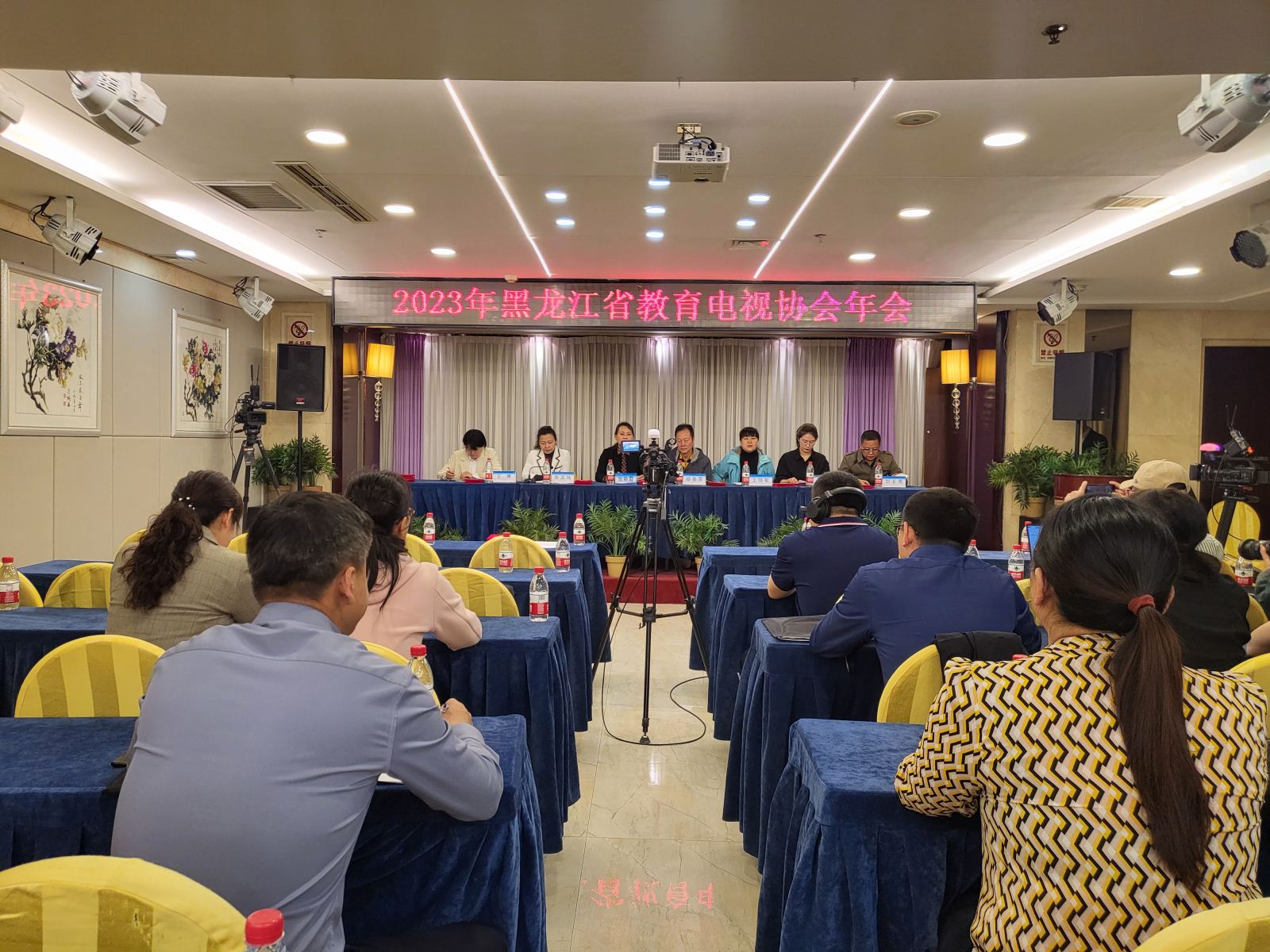 5月5日,2023年黑龙江省教育电视协会年会在牡丹江举行, 协会会长杨春霁,牡丹江师范学院副院长、党委常委张艳霞,协会秘书长哈尔滨工业大学宣传部副部长张滨楠,哈尔滨师范大学传媒学院副院长王晓敏等出席开幕式。来自省内40余所高校、会员单位的领导及相关人员70余人参加了会议。