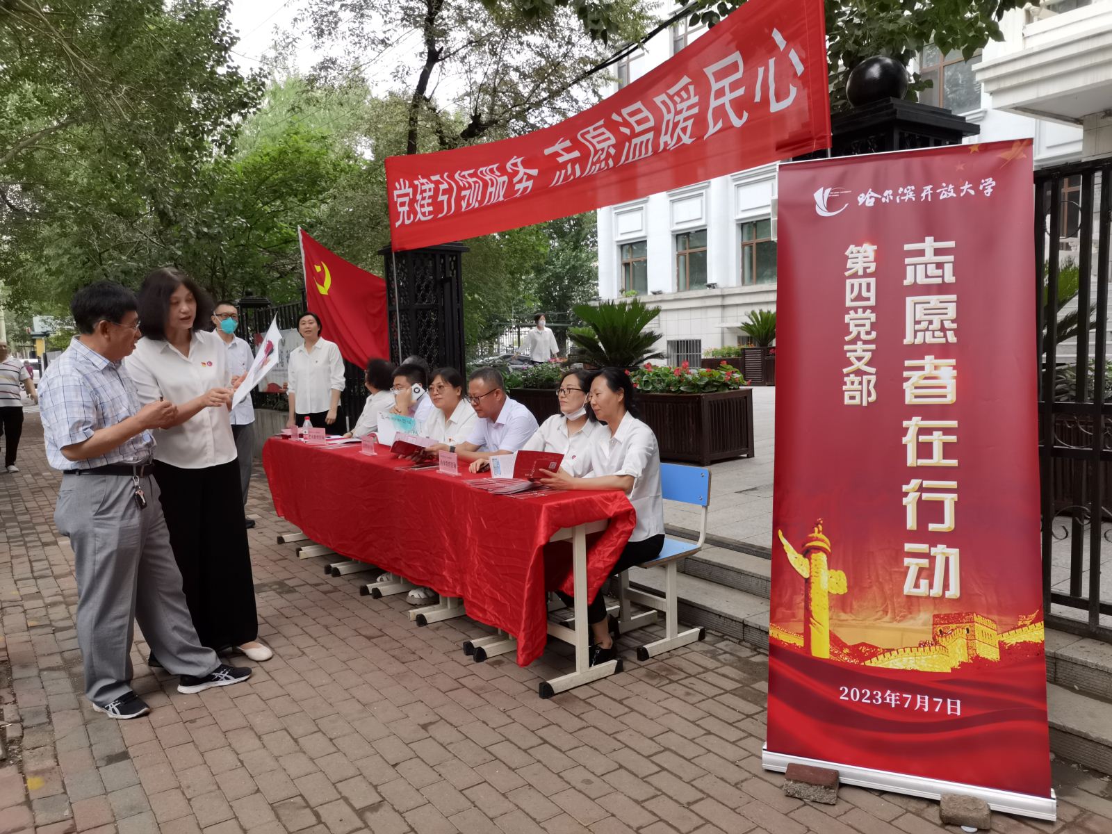 为扎实推进主题教育有力有序有效开展,把学习成果转化为“我为群众办实事”的具体实践活动中,7月7日,第四党支部开展“党建引领服务,志愿温暖民心”志愿服务活动。