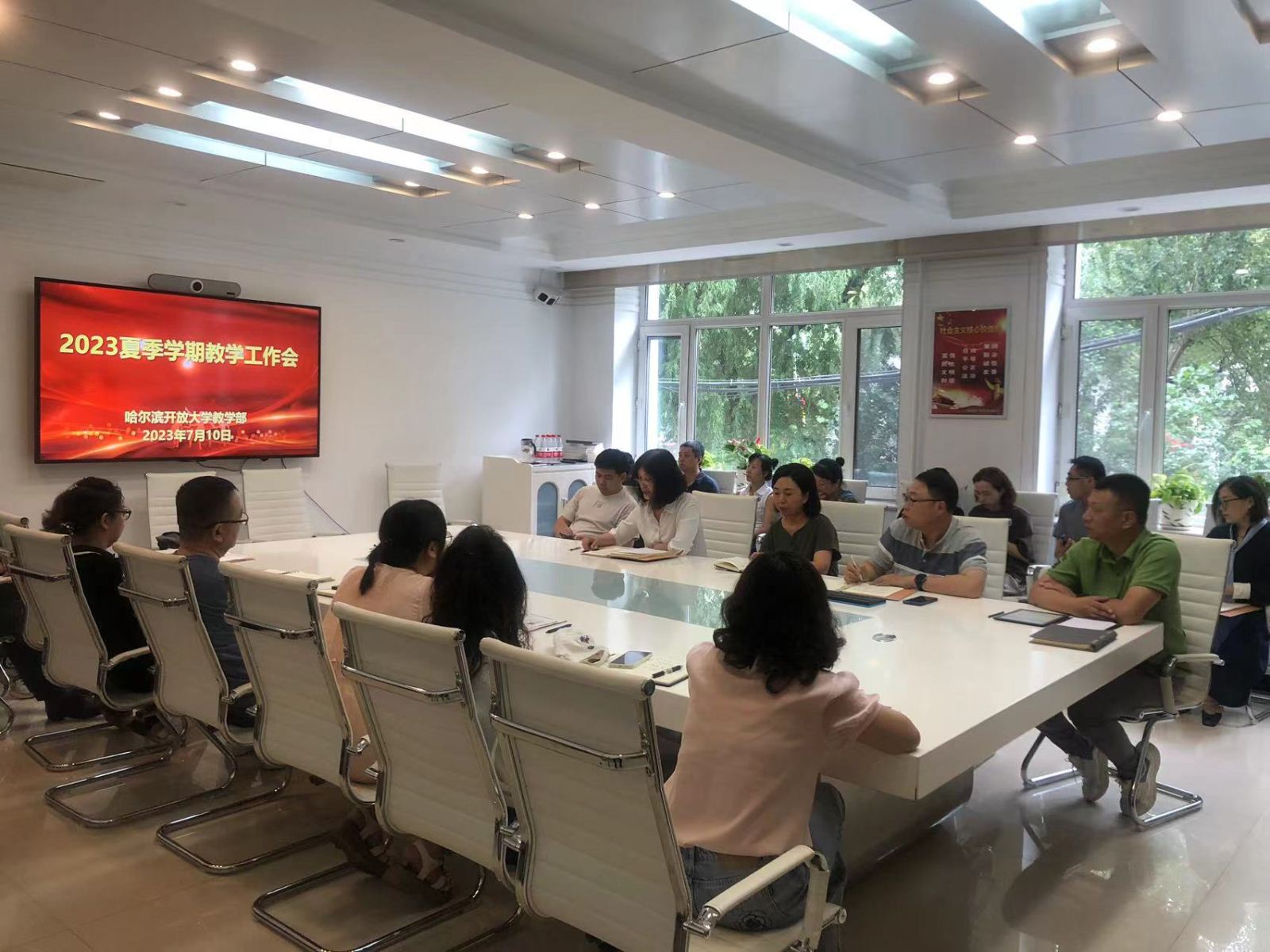 教学部部长方天宇就近期教学部的重要工作进行了部署:一、按照多宝(中国)评估工作的整体要求,积极参与多宝(中国)的评估工作,总结近3年来的工作成果;二、加强课程思政工作力度,在2023秋季学期要有亮点有特色。三、按照国家开放大学2023秋季教学工作的各项要求,全面开展2023秋季学期教学相关准备工作;四、积极探索绩效改革新思路,充分调动全体教师的工作热情,多出成果,出好成果;五、开展专业和课程建设改革和创新,要善于在日常繁杂琐碎的工作中总结经验,提升工作水平。