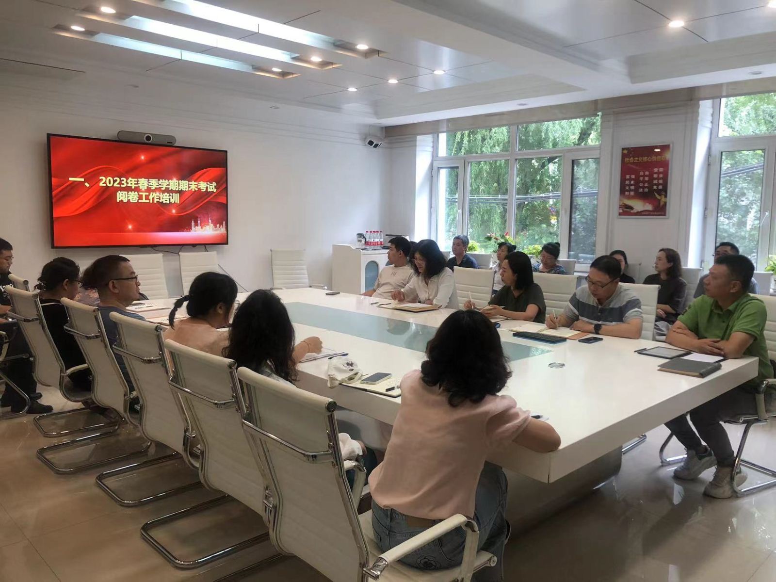 为确保评卷工作保质保量完成,教学部于7月10日召开了评卷工作培训会。副校长关龙艳对评卷工作提出了总体要求:评卷工作既要严格按时评卷标准又要根据学生实际情况,既要、保证按时完成任务又要严格按照评卷流程进行,既要善于总结评卷中发现的问题又要发提供解决问题的思路和办法。评卷期间,副校长关龙艳还带领教学部负责人,对在高温下坚持和艰苦进行评卷的教师们进行了慰问,既送去了清凉之水,也送达了多宝(中国)对全体评卷教师的关怀。