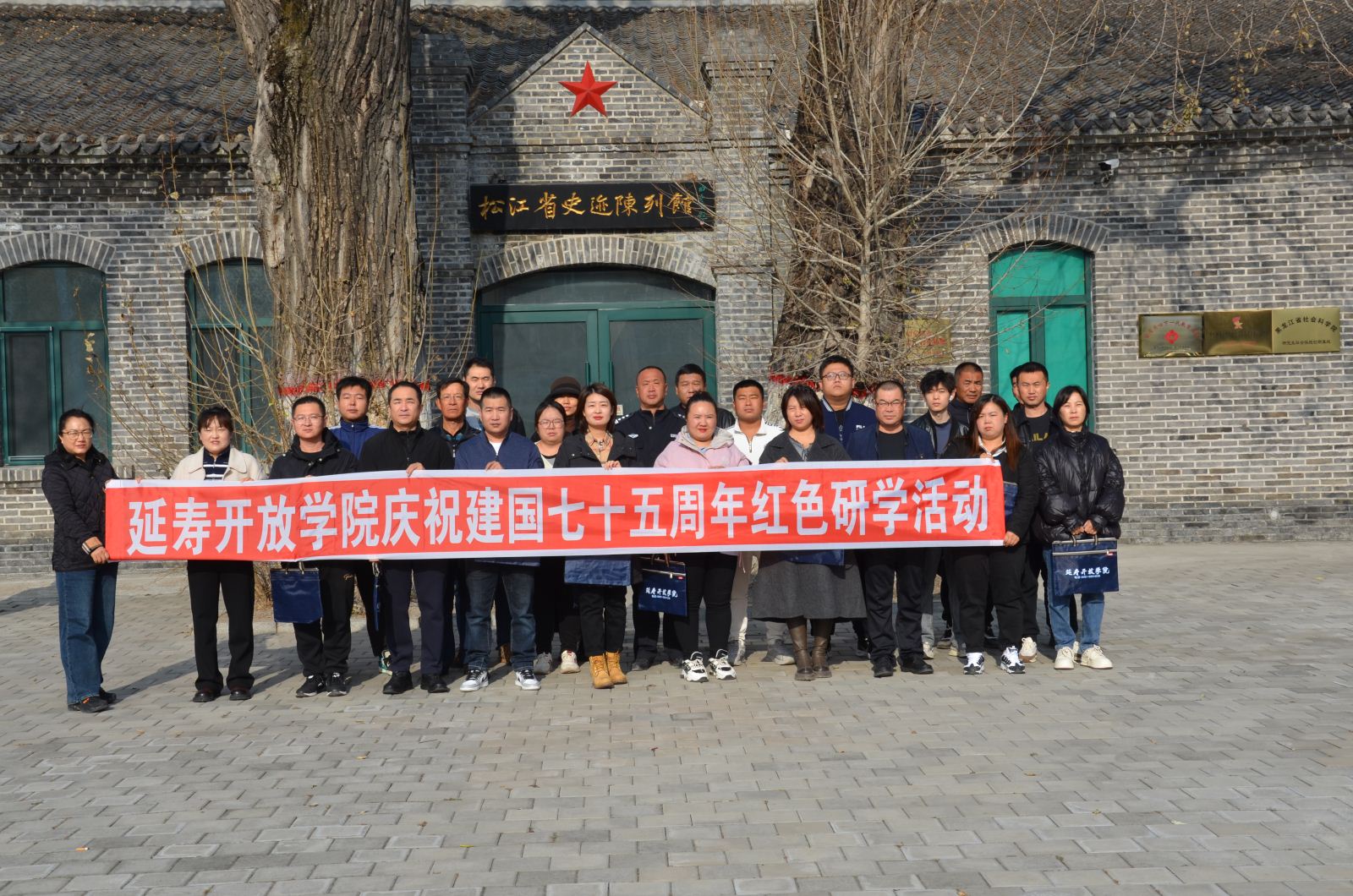 为庆祝中华人民共和国成立75周年,哈尔滨开放大学直属学院、五常开放学院、依兰开放学院、呼兰开放学院、延寿开放学院、通河开放学院在10月组织开放教育2024秋新生展开红色研学系列活动。