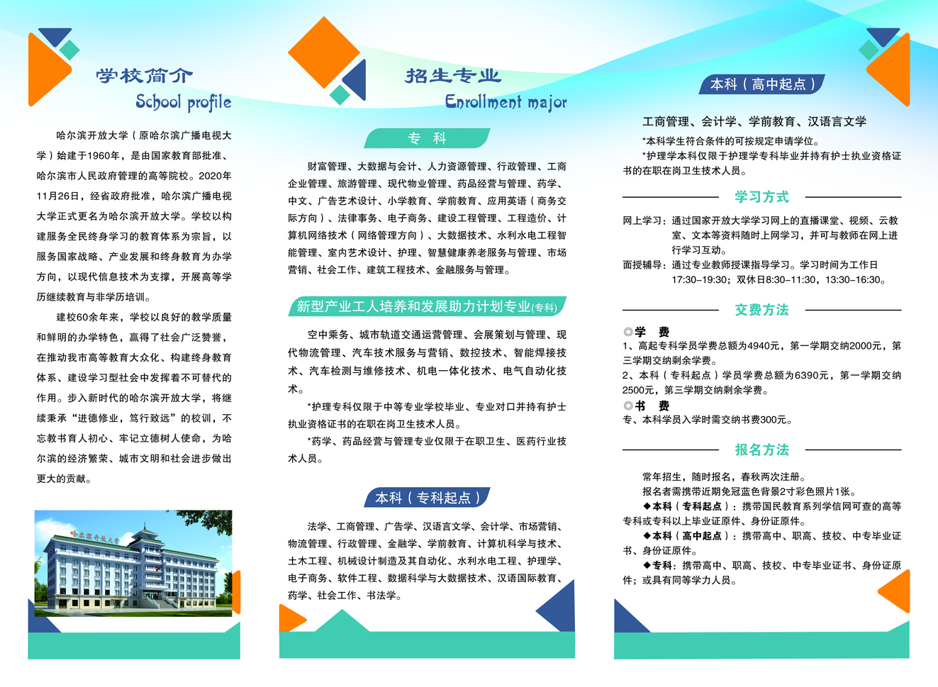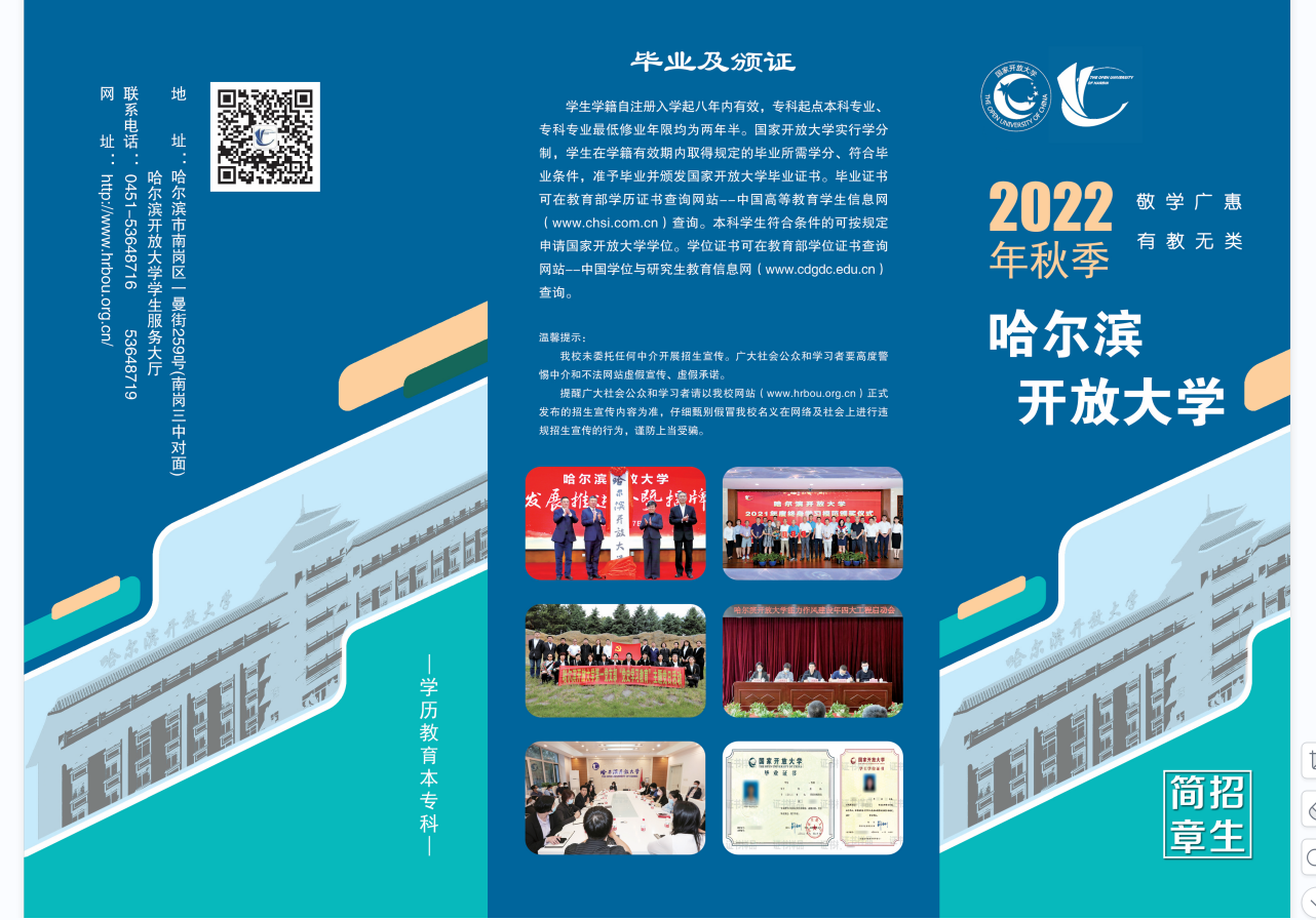 哈尔滨开放大学2022年秋季开放教育招生简章