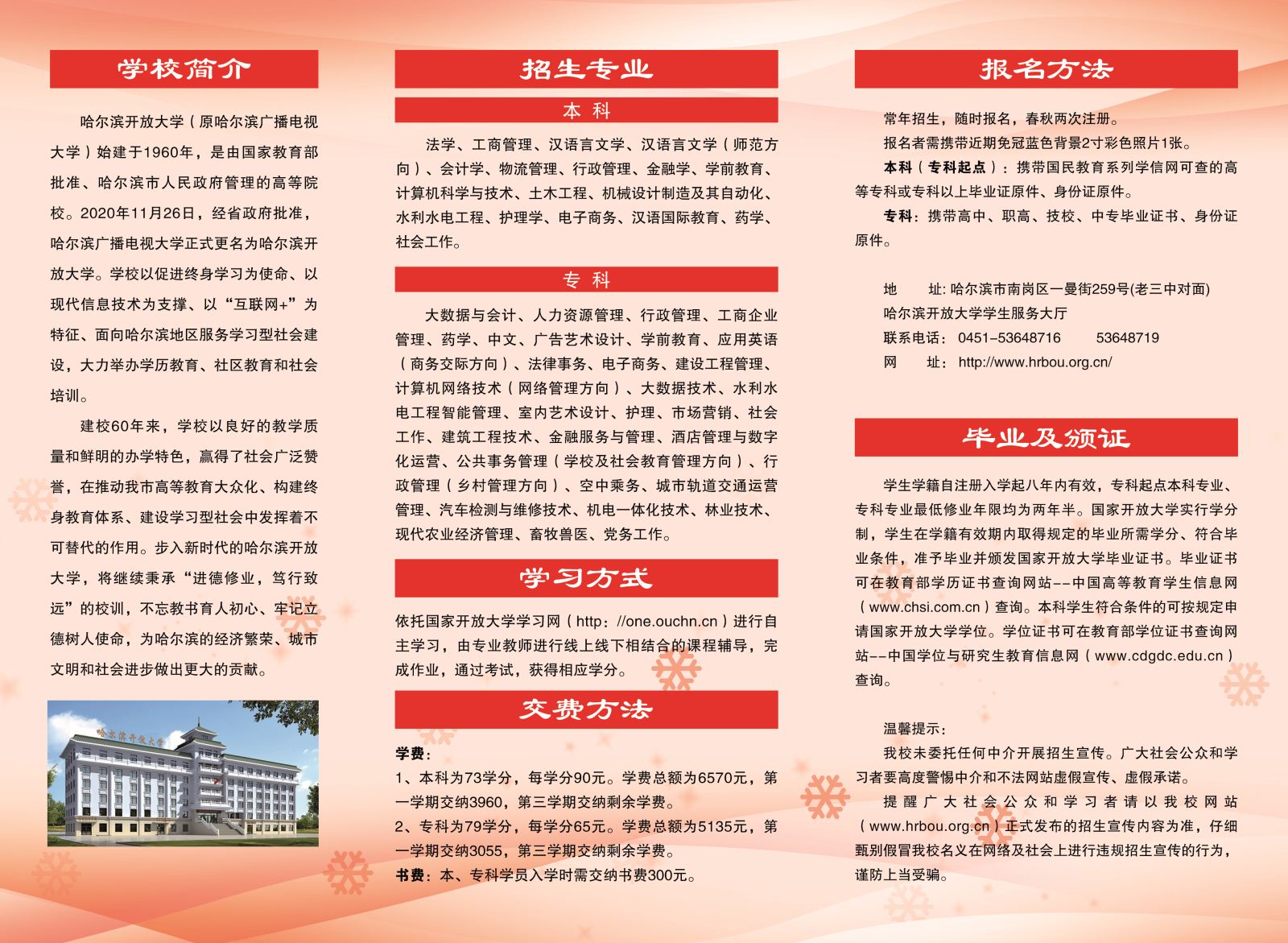 哈尔滨开放大学2023年秋季开放教育招生简章
