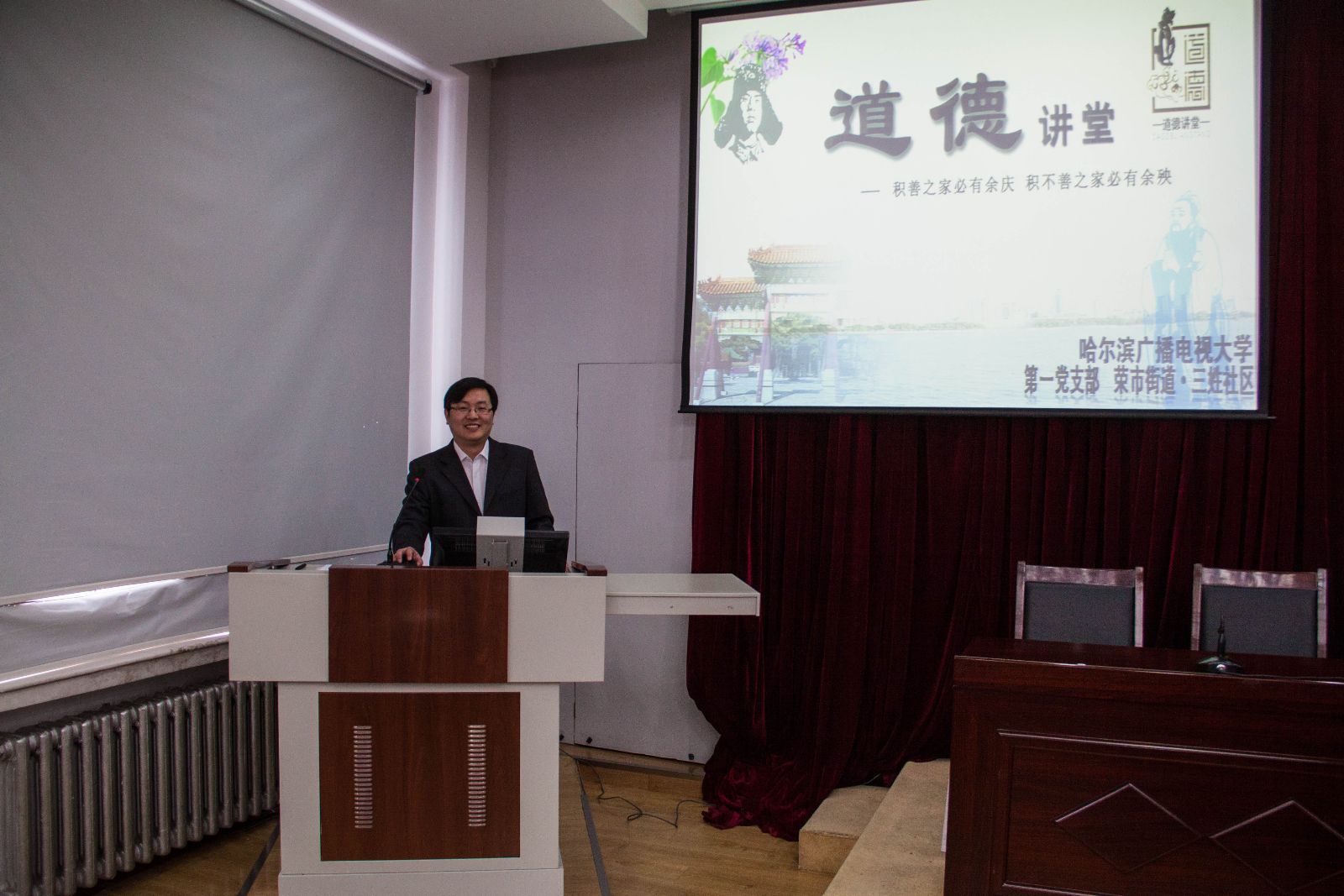 为进一步弘扬革命传统,树立道德新风,4月10日下午,第一支部在502多功能厅举办以“清明--弘扬革命传统”为主题的道德讲堂活动。校党委副书记、纪委书记马弘莉、全体教职工以及南岗区荣市街道三姓社区居民代表参加本次道德讲堂活动。此次道德讲堂由第一支部副书记赵继刚主持。