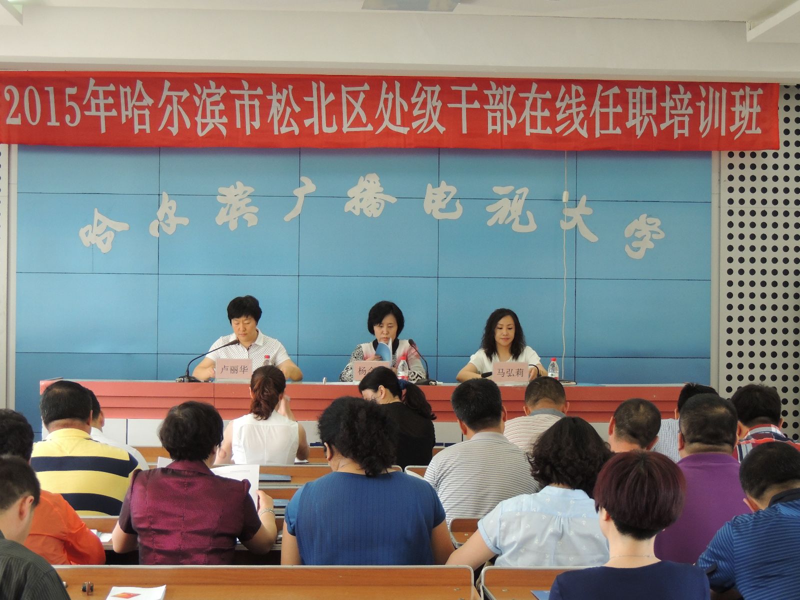 6月15日,2015年哈尔滨市松北区处级干部在线任职培训班在我校正式开班。松北区各委办局的新任职处级干部46人参加开班式。