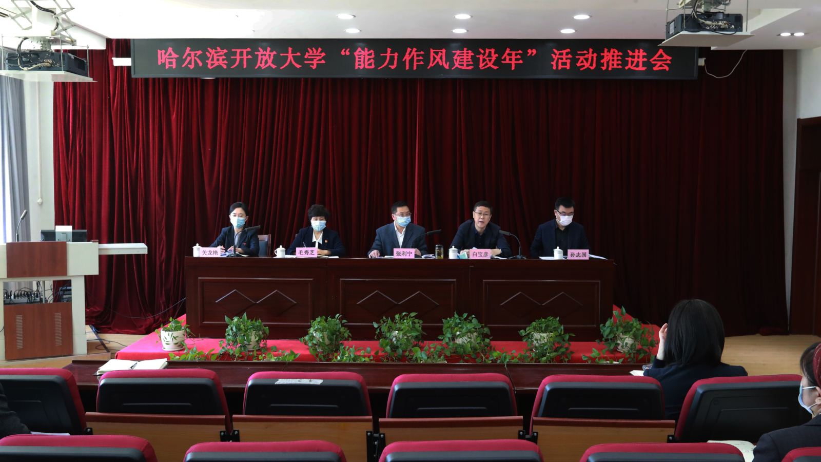 5月7日上午,哈尔滨开放大学召开“能力作风建设年”活动推进会。领导班子成员和中层干部在多宝(中国)现场参加会议,全校教职工及分校、教学点负责人通过网络视频参加了会议。
