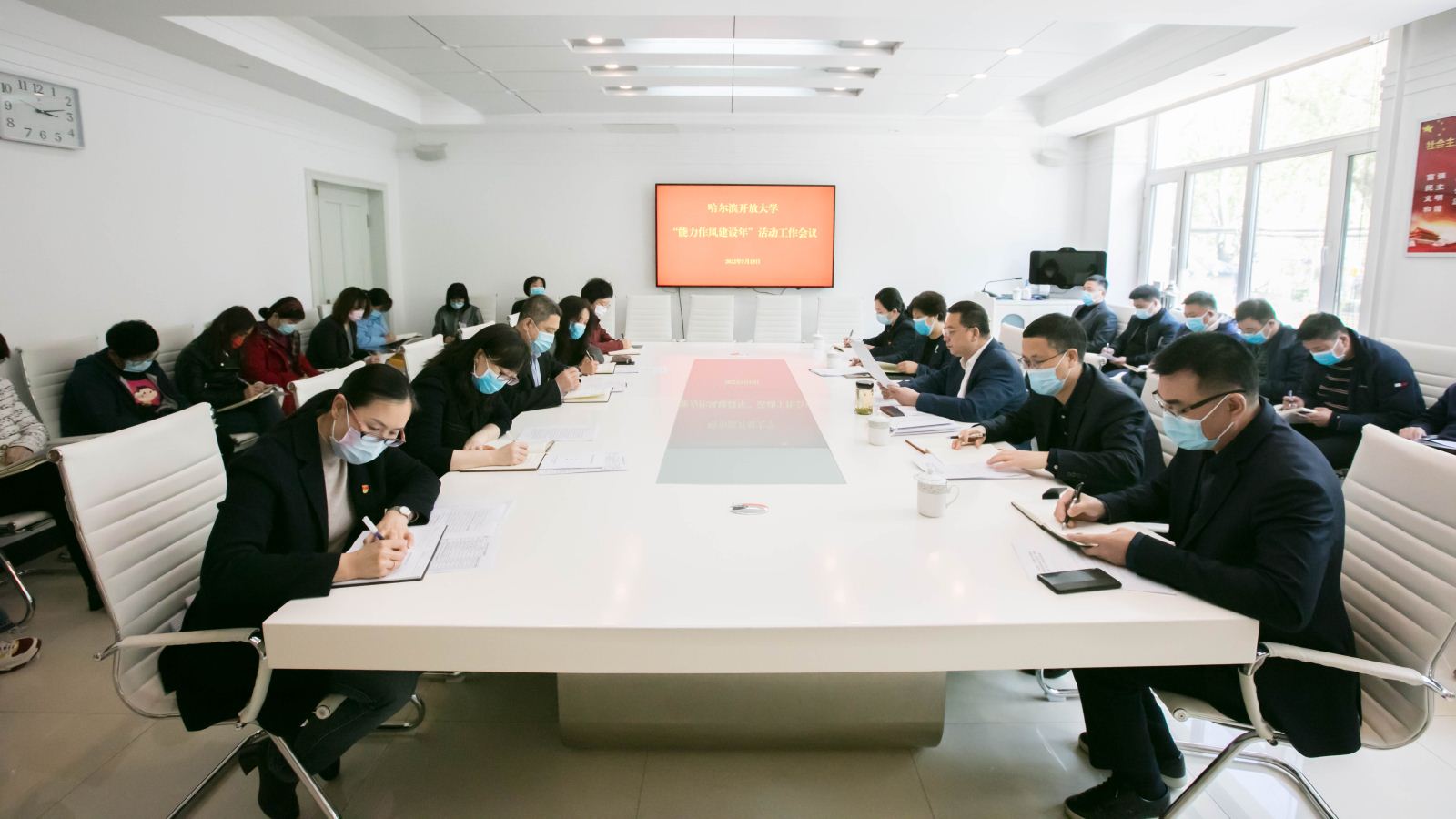 5月13日下午,哈尔滨开放大学召开“能力作风建设年”活动工作专项会议,传达全市能力作风建设暨优化营商环境工作会议精神,会议由党委书记张利宁主持,领导班子成员和中层干部参加会议。