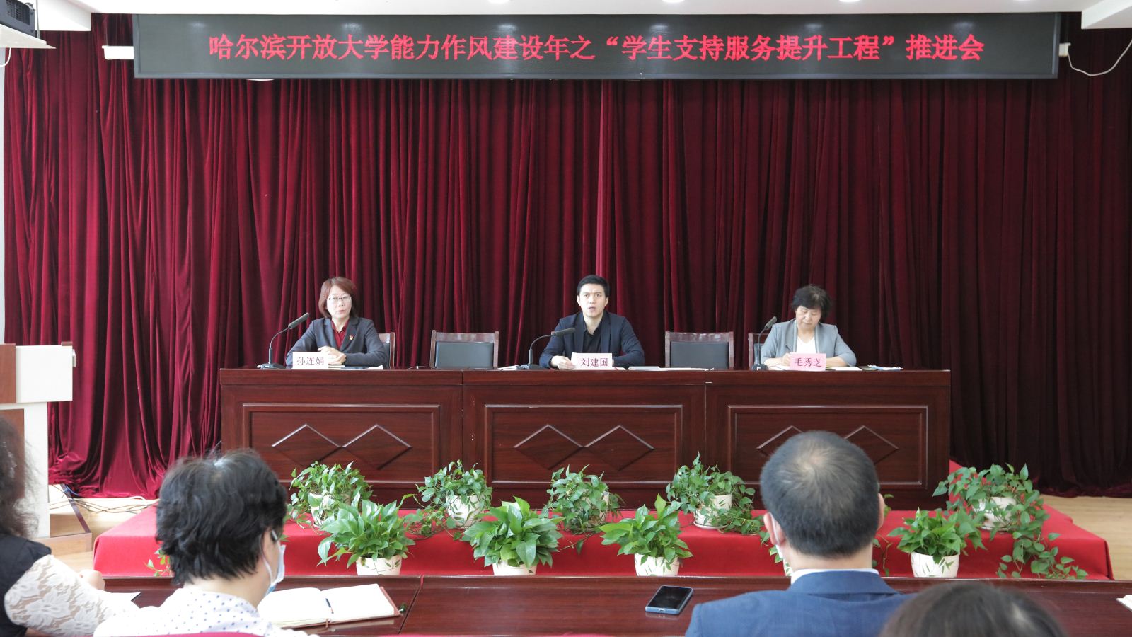 毛秀芝副校长宣读了学生支持服务提升工程实施方案,刘建国校长与大家分享了作为学生工作者的工作经历、工作成绩和内心感受,强调学生满意度是评价我们工作的重要标准,希望专兼职辅导员积极思考,主动落实,积极参与到“能力作风建设年”活动中,解放思想,提升能力,转变作风,为哈尔滨开放大学建设做贡献。