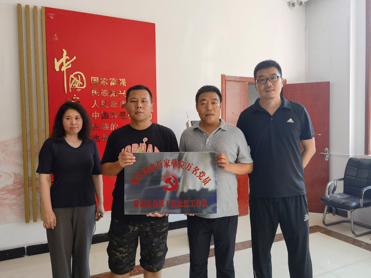 8月1日上午,花园街道繁荣街社区党委举行哈尔滨市百家单位万名党员常态化包保下沉社区工作队揭牌仪式。