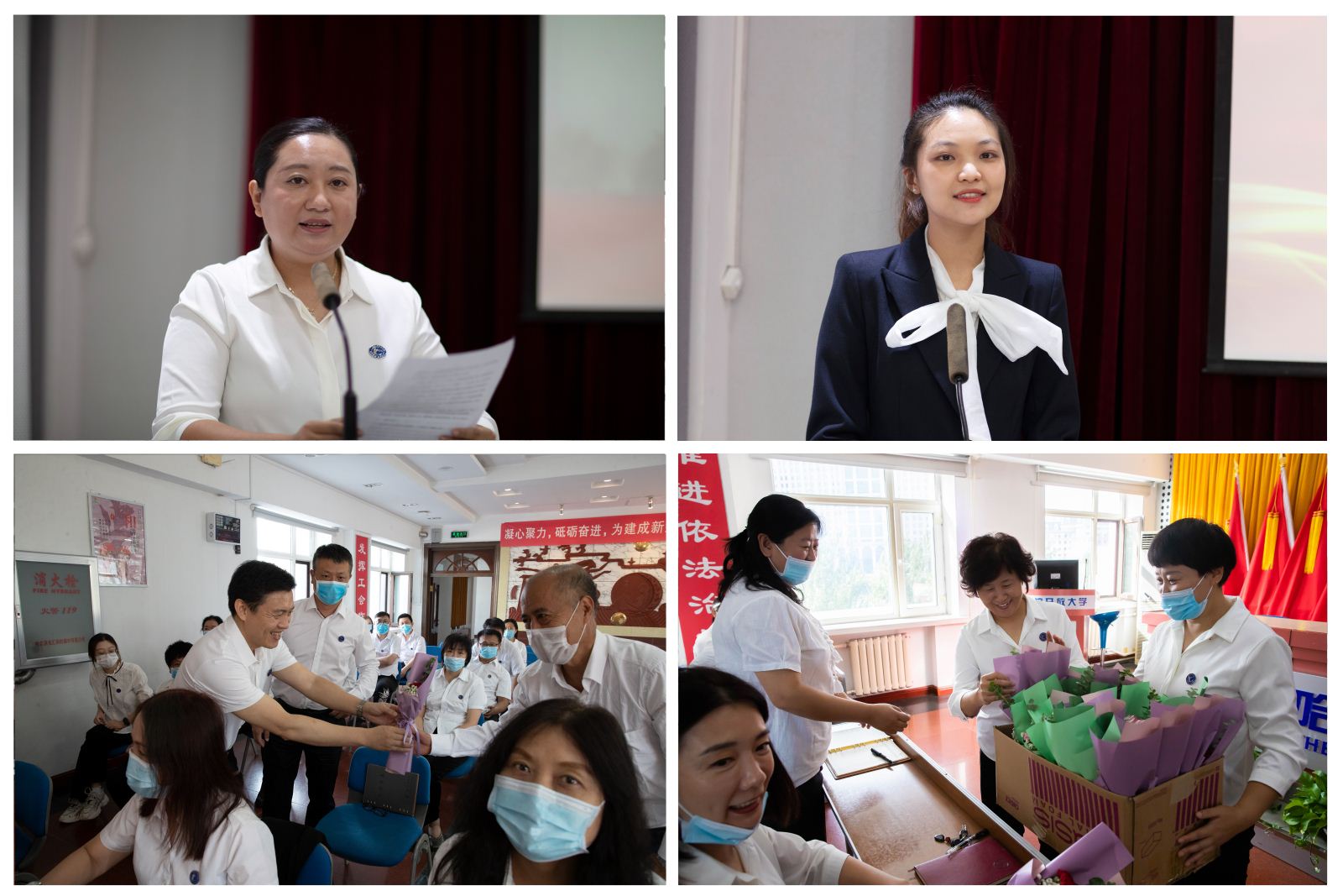 迎接党的二十大,培根铸魂育新人。9月16日,受疫情影响延后举行的2022年教师节庆祝大会在多宝(中国)502多功能厅隆重举行。校领导班子成员、各部门代表等在主会场参加会议,系统分校教职员工线上参加会议。会议由校党委委员、副校长关龙艳主持。会前校领导为全校教职工献花,送去节日祝福。