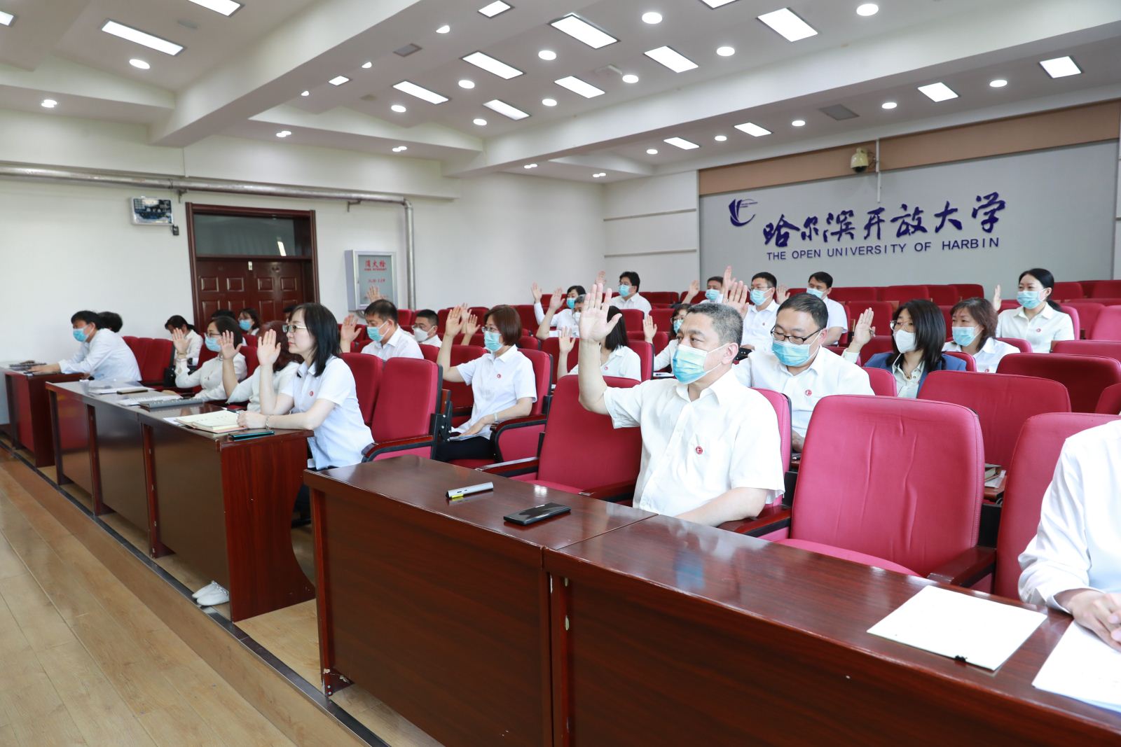 会议的最后,全体教职工代表一致表决通过《绩效工资分配实施办法(暂行)》及《开放教育新园区建设情况》。