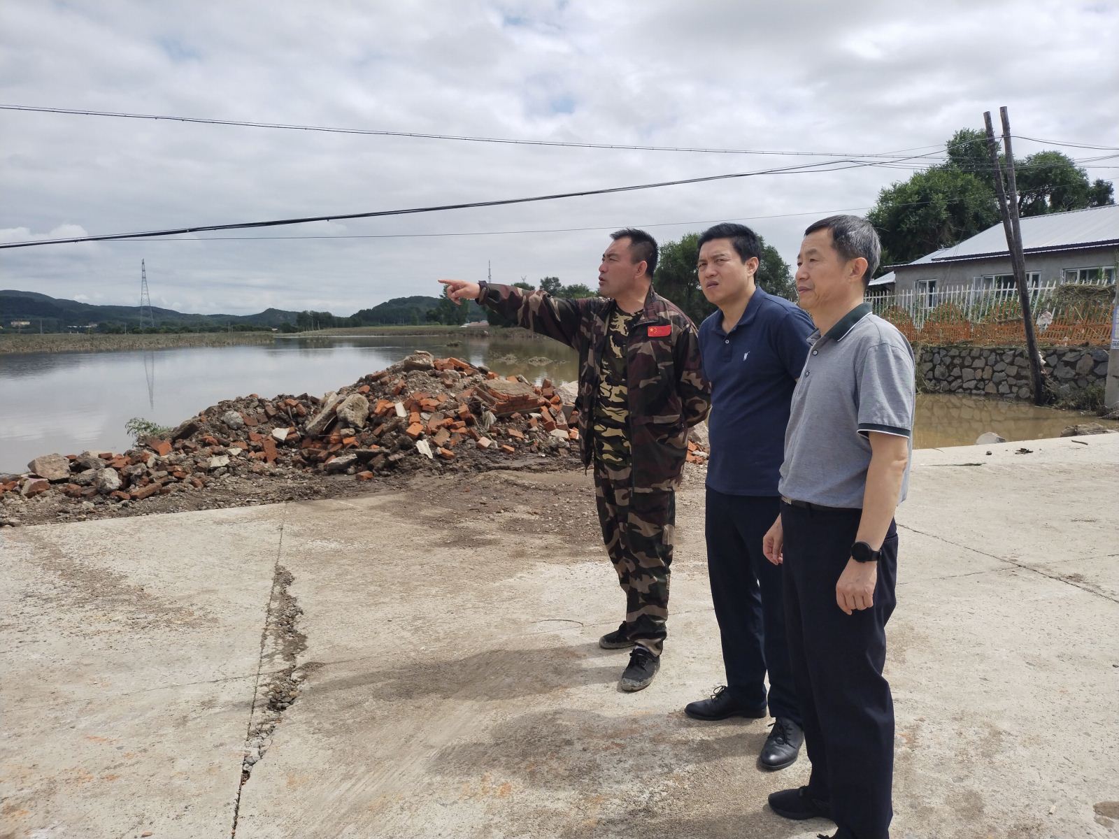 兴业村的灾情,也牵动着哈尔滨开放大学领导班子的心。大水未退尽,哈尔滨开放大学党委书记刘建国、党委副书记陈永昕、党委委员党政办公室主任马东海等工作组一行,深入受灾严重的五常市安家镇兴业村看望慰问驻村工作队,了解防汛救灾工作进展情况,以及工作中的困难和需求,并指导乡村振兴和当前防汛工作。校领导一行先后走访了防汛值守卡点、村委会和工作队驻地,详细了解兴业村迎峰度汛、房屋损毁、农作物受灾、群众转移安置等情况。细心察看工作队员的办公、生活环境,询问他们需要解决的困难和问题,随车为他们带来生活物资,解决燃眉之急。对他们在防汛一线的辛勤付出和无私奉献表示衷心的感谢,叮嘱他们在做好防汛工作的同时也要提高个人防护意识,注意自身安全。