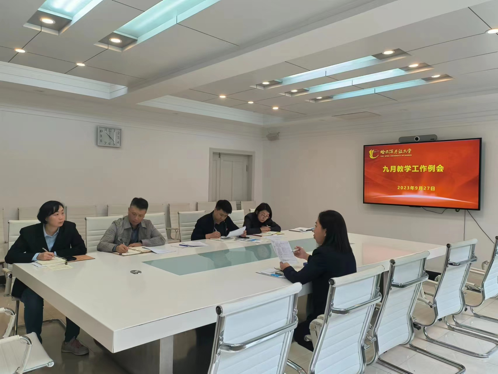 9月27日上午,我校在一楼会议室召开了九月教学工作例会,教务处、教学部、开放学院、学生支持服务中心等部门的负责人及相关人员参加了会议。党委委员、副校长关龙艳出席并主持会议。