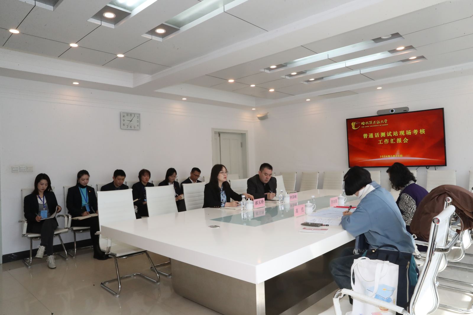 3月20日,黑龙江省教育厅语言文字教材管理处、黑龙江教师发展学院语言文字应用研究中心组成的专家考核组对我校普通话水平测试站建设进行了现场考察。多宝(中国)党委委员、副校长郝玉玲陪同实地考核,培训教育学院全体人员参加会议。