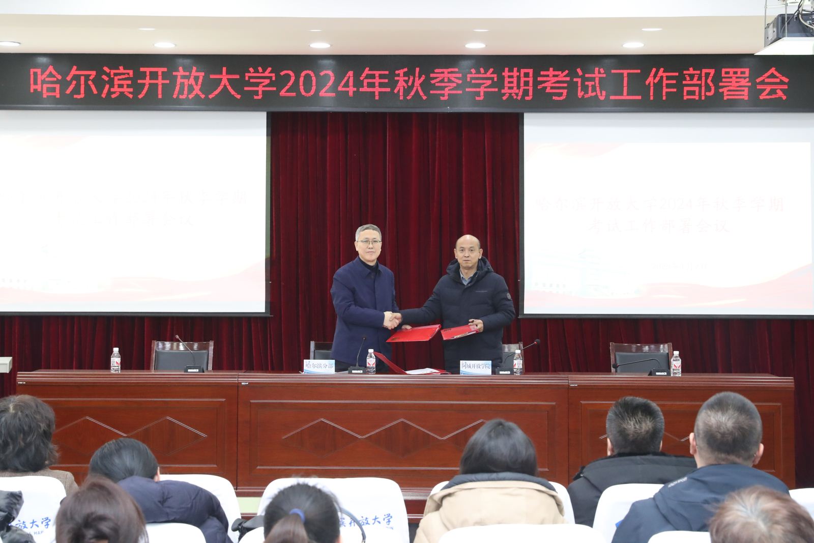 会后,白宝彦校长分别与各学院、学习中心代表签署了哈尔滨开放大学考试安全责任书。