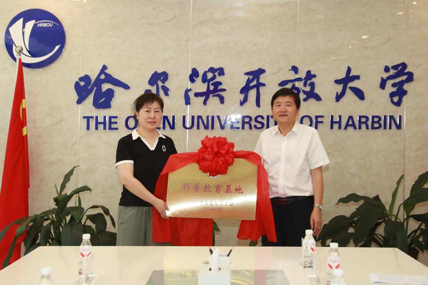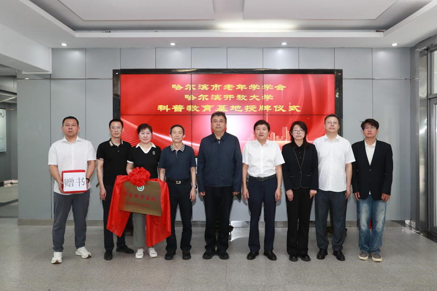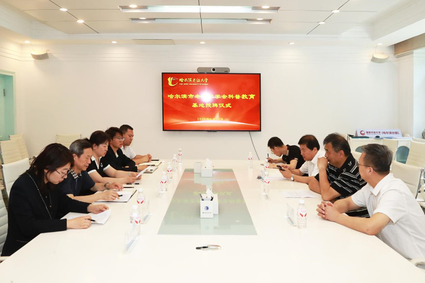 6月20日,哈尔滨市老年科普教育基地授牌仪式在哈尔滨开放大学举行。哈尔滨开放大学党委副书记陈永昕,哈尔滨市卫健委副主任杨超,中国老年医学学会副会长、黑龙江省老年医学学会会长、哈尔滨市老年学学会会长高广生,黑龙江省老年医学学会秘书长孟昕,哈尔滨市老年学学会秘书长关放以及我校社区教育学院全体人员参加了活动。
