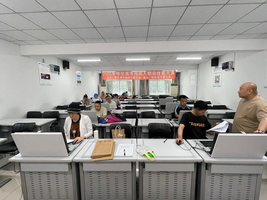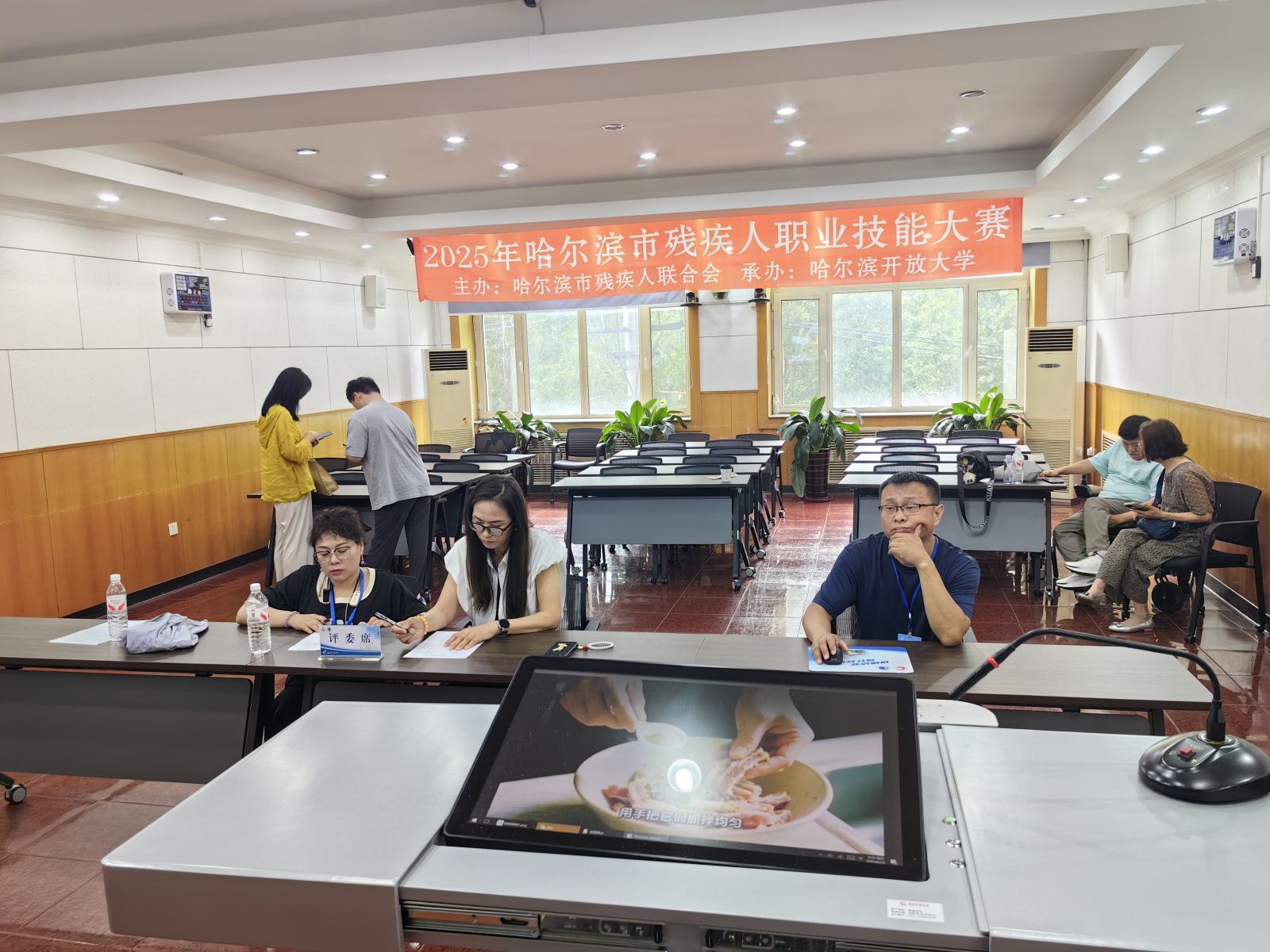 为全面提升残疾人职业技能水平,搭建展示才华的舞台,6月29日,2025哈尔滨市残疾人职业技能大赛及颁奖仪式在哈尔滨开放大学如期举行,本次大赛由哈尔滨市残疾人联合会主办,市残疾人综合服务中心与哈尔滨开放大学培训教育学院承办。哈尔滨市残疾人联合会党组成员、副理事长姜永明,哈尔滨开放大学副校长陈琳晶等领导观摩比赛全程并出席颁奖仪式。