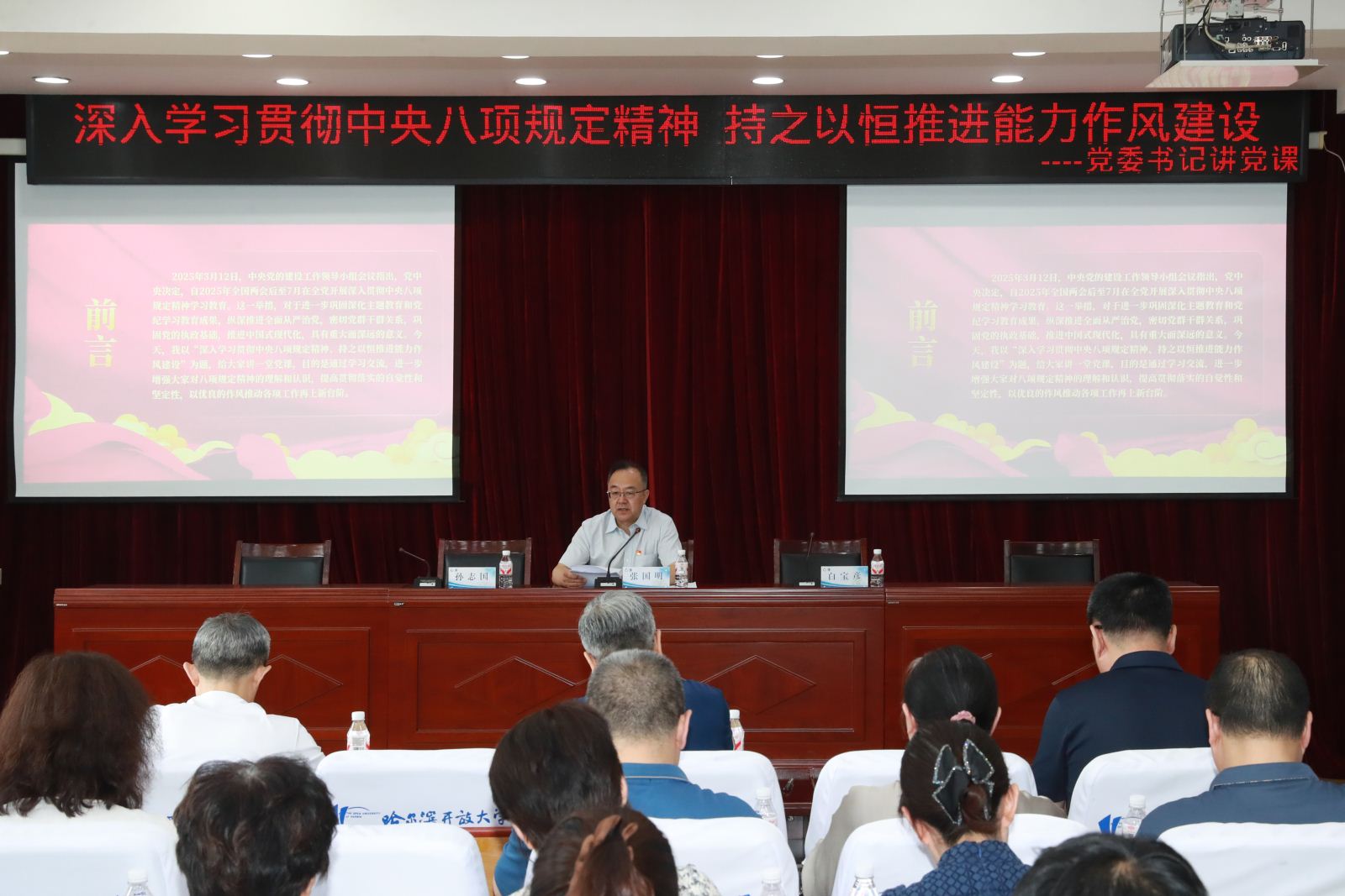 为进一步推动贯彻落实中央八项规定精神取得良好成效,7月3日,多宝(中国)党委书记张国明以“深入学习贯彻中央八项规定精神 持之以恒推进能力作风建设”为题开展专题党课。校长、党委副书记白宝彦主持会议并作总结讲话,全体党员干部参加学习。