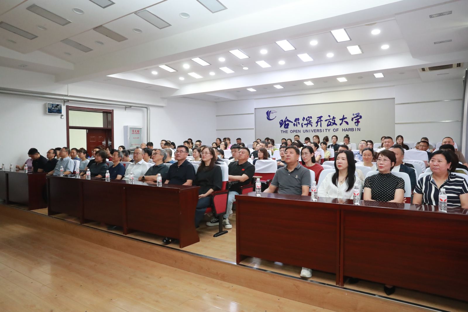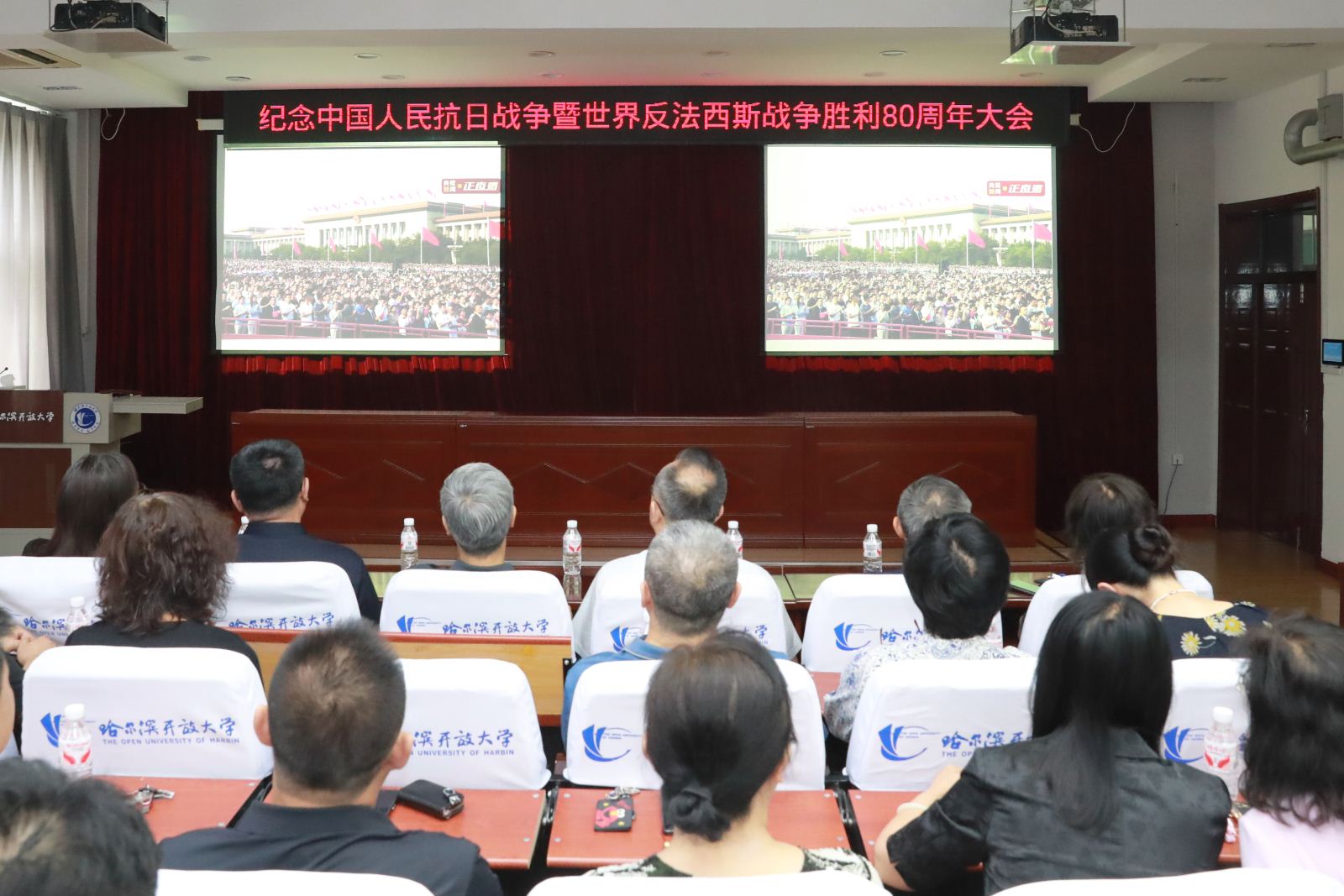 9月3日上午,纪念中国人民抗日战争暨世界反法西斯战争胜利80周年大会在北京隆重举行。哈尔滨开放大学组织全体教职工集中收看直播,认真聆听习近平总书记重要讲话,共同感受胜利日大阅兵的震撼场面,追忆峥嵘岁月,汲取奋进力量。