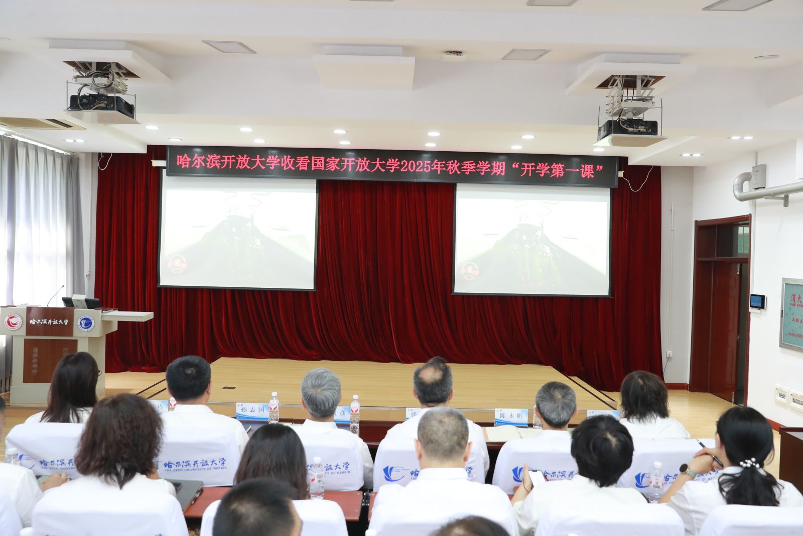 9月15日上午10时,国家开放大学党委书记、校长王启明通过视频直播形式,为全国开放大学体系师生讲授2025年秋季学期“开学第一课”——《在实现中华民族伟大复兴的征程上跑出精彩人生》。哈尔滨开放大学高度重视,提前部署,组织全体系师生同步收看,确保学习活动全覆盖、见实效,正式拉开新学期序幕。