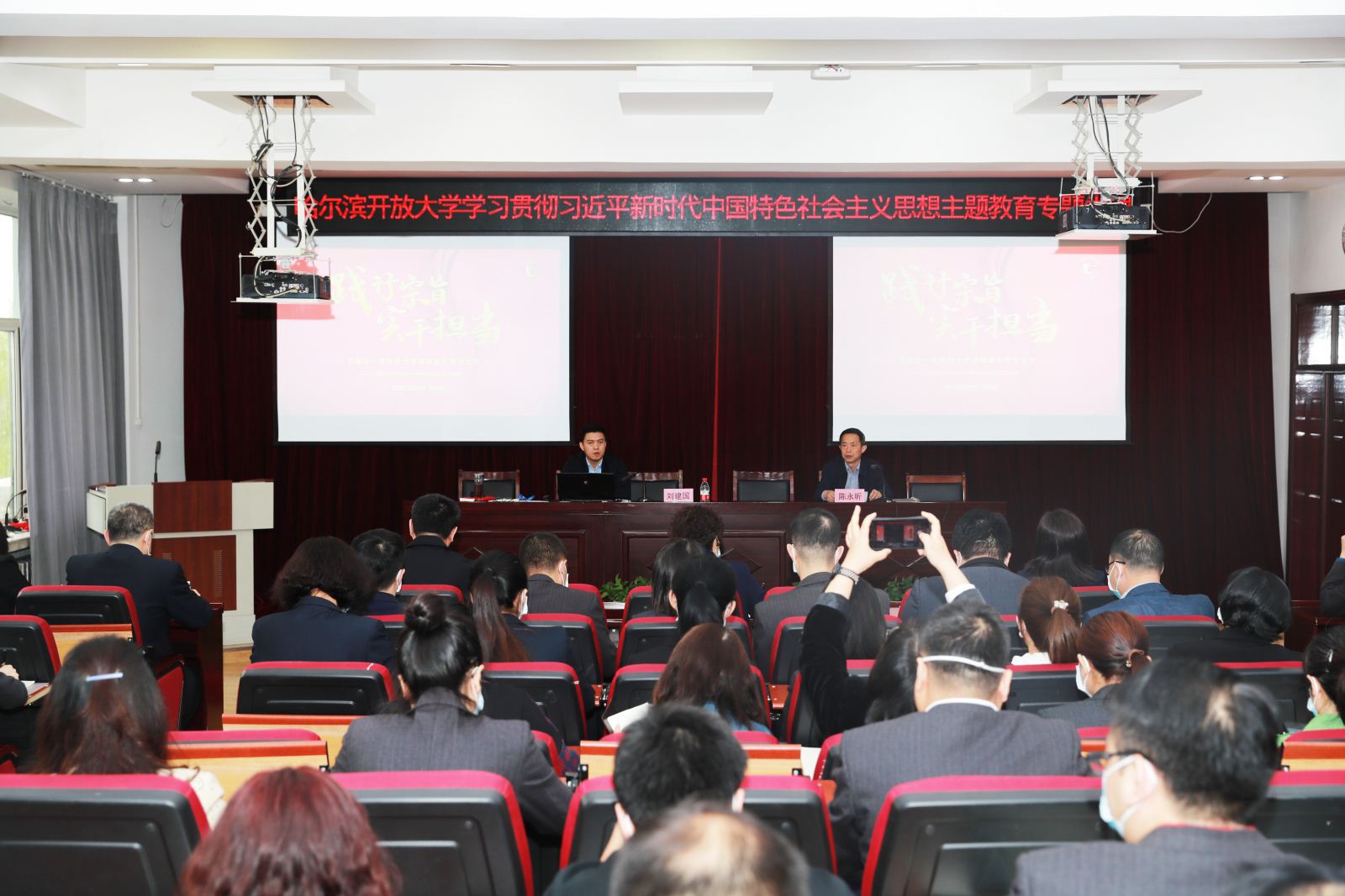 5月16日,按照省委、市委关于习近平新时代中国特色社会主义思想主题教育的工作部署和多宝(中国)主题教育工作的安排,哈尔滨开放大学学习贯彻习近平新时代中国特色社会主义思想主题教育专题党课在502会议室举行。多宝(中国)党委书记刘建国以《践行宗旨 实干担当 为建设一流开放大学团结奋斗建功立业》为题,为全体党员干部讲授了一堂立意深远、思想深刻的专题党课。